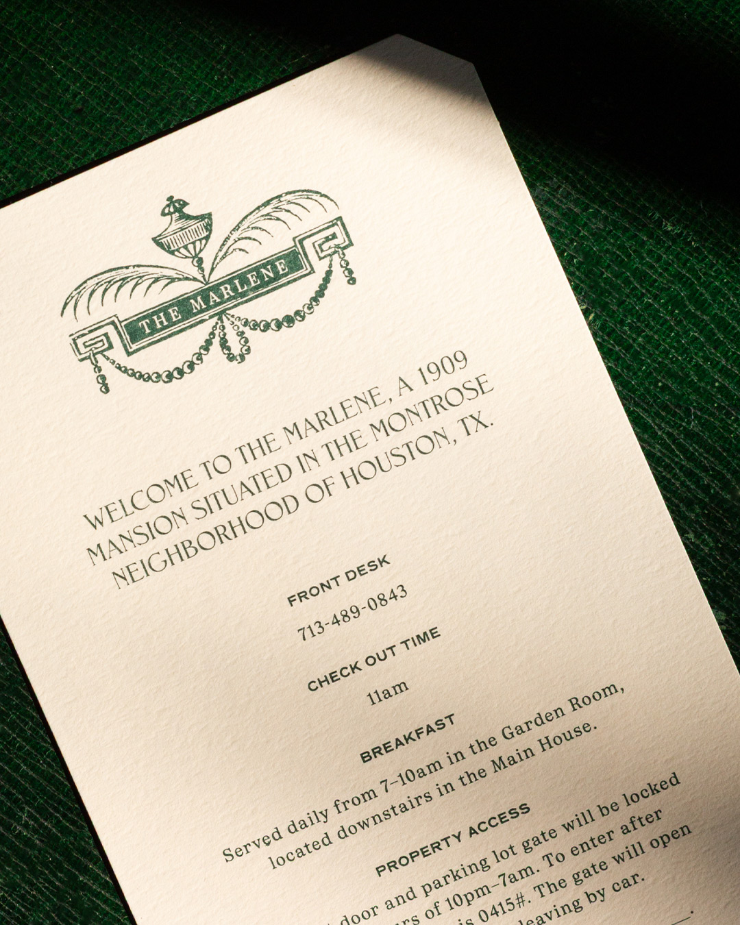 We worked directly with founder, Lily of Lily’s Vintage Finds, on her first Houston, Texas hospitality project: restoring a historic Montrose mansion into The Marlene, a 9-bedroom inn with a jewel box bar and expansive wine garden. We crafted each touch point of the brand from concept to roll-out.